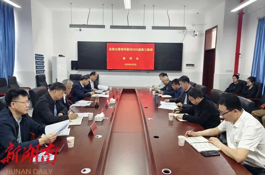 湖南日报·新湖南客户端4月9日讯(通讯员 欧阳永强)4月9日上午,县委书记刘朝晖来到永兴一中看望慰问高考备考一线的高三教师,并召开座谈交流会,为高三师生加油鼓劲。