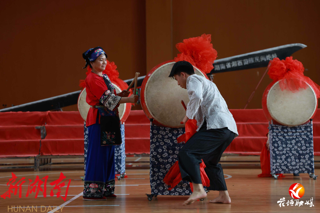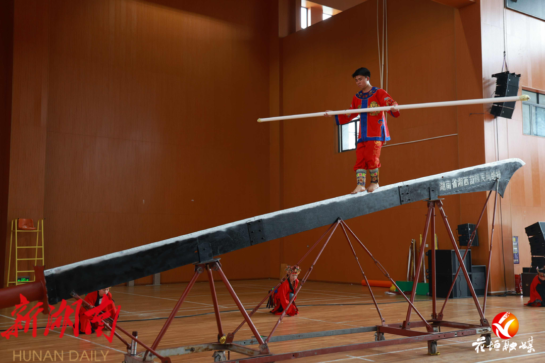 活动中,师生们也带来了极具民族特色的苗族非遗表演。上刀梯《大刀上的奇人》的表演者,赤脚踩在锋利的刀刃上,稳步向上攀登,动作惊险刺激。苗鼓表演《猴韵传情》,鼓手们激情澎湃,鼓点明快有力,以灵动的舞姿和多变的节奏,为观众带来苗族人民的欢乐与热情。舞龙表演《龙舞三中》巨龙在同学们的舞动下,时而蜿蜒盘旋,时而昂首腾飞,气势磅礴,带领观众感受传统非遗的独特魅力。
