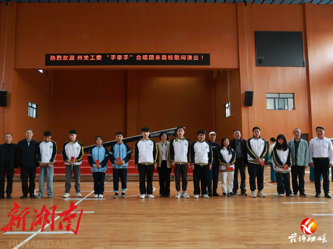 湖南日报·新湖南客户端4月9日讯(通讯员 邓雨露)4月8日,湘西州关工委、州教体局关工委组织“手牵手”合唱艺术团来到花垣县职业高级中学、花垣县第三中学进行慰问演出,进一步丰富校园文化生活,提升师生艺术素养。花垣县政协副主席石伶俐出席观看。