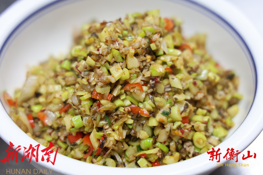 层层螺旋似的笋衣包裹得很紧,但用巧劲儿剥两三下后,一根根嫩黄、约五六寸长的竹笋就展现在眼前。剥好的竹笋,放进开水中焯一下,可以去掉竹笋的苦涩味。焯好后的竹笋捞出,再用冷水浸泡,切碎后放入油锅中,与酸菜、肉末、辣椒一起翻炒几分钟,一道美味下饭的春笋炒酸菜就制作好了。
