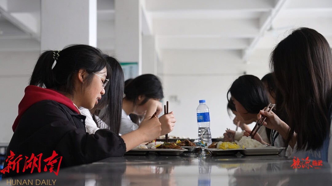 午餐时间,南强中学的食堂内秩序井然,学生和陪餐老师有序取餐。通过智慧食堂管理平台,家长们可以查阅学校每周的食谱安排、食堂的每一笔采购单据,实现了家校共管的透明化。