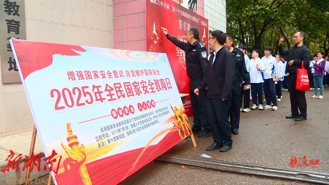 龙源临武客户端4月10日(记者 李亚鹏) 今年4月15日是第十个全民国家安全教育日。4月10日,由县委办、县委宣传部、县委政法委、县委网信办、县国家保密局、县公安局、县教育局联合举办的“践行总体国家安全观 走深走实十周年”主题活动走进临武六中,为学校 200 余名学生带来了一场国家安全与国防教育的生动课堂。