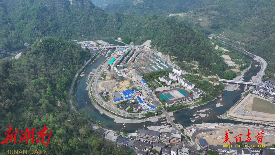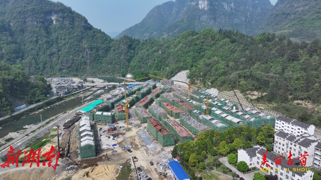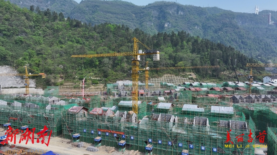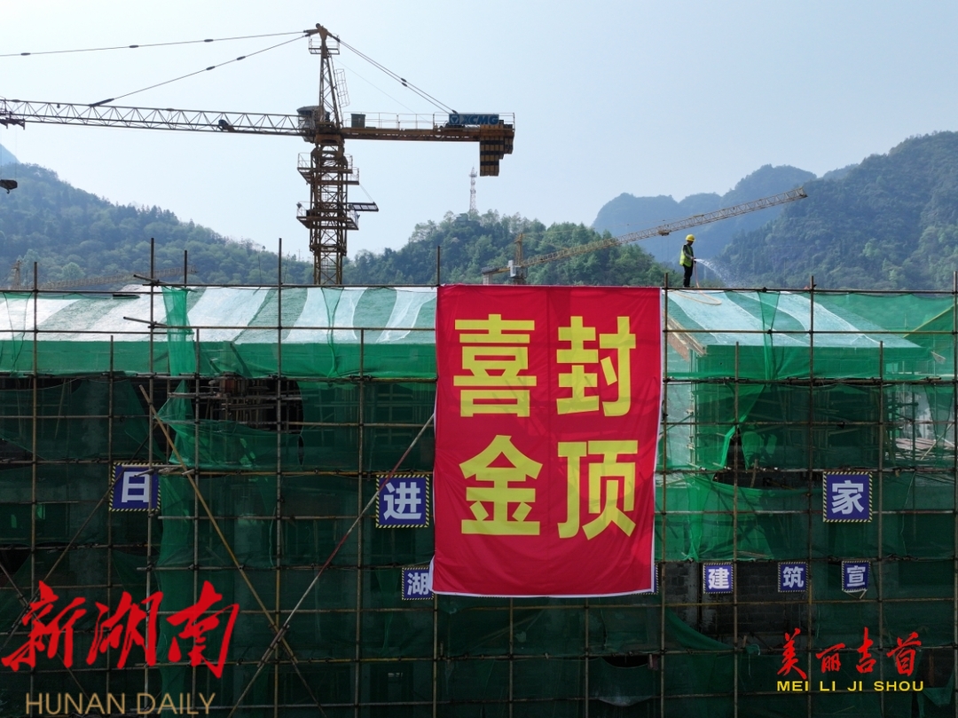 吉首市融媒体中心4月10日讯(全媒体记者 王槐松 陈生永 何鑫)4月8日,大兴寨水库工程矮寨移民安置区部分房屋喜封金顶,由湖南一甲建筑有限公司承建的B区指定安置房主体部分完成主体封顶,楼顶“喜封金顶”的红色条幅在阳光下格外醒目。施工现场塔吊林立、车辆往来穿梭,工人们正抢抓工期对后续房屋进行主体施工和封顶作业,预计5月底实现全面封顶,圆移民群众安居梦。