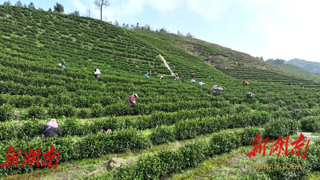 湖南日报·新湖南客户端4月11日讯(通讯员 曾振科 卿逸辉)连日来,湖南春满园生态茶业有限公司的1500亩川坳茶园进入采摘旺季,在海拔800余米的茶山上,500余名采茶工穿梭于层层茶垄间,采摘春茶。