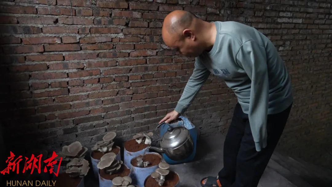 村民刘华军说:“村里面搞了一些蘑菇给我们种植,我一只手觉得很方便,也有一些小小收入。”