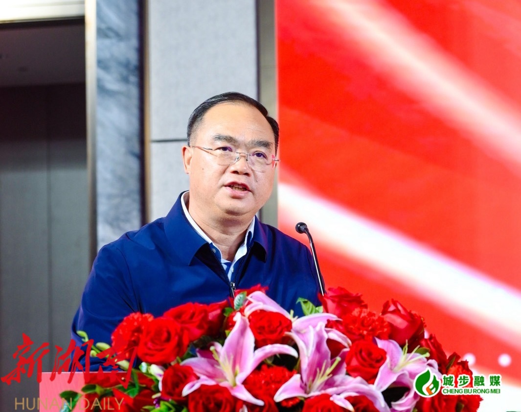 图为湖南省委原副秘书长、湖南省政协常委、省政协港澳台侨和外事委员会主任肖祥清在会上讲话
