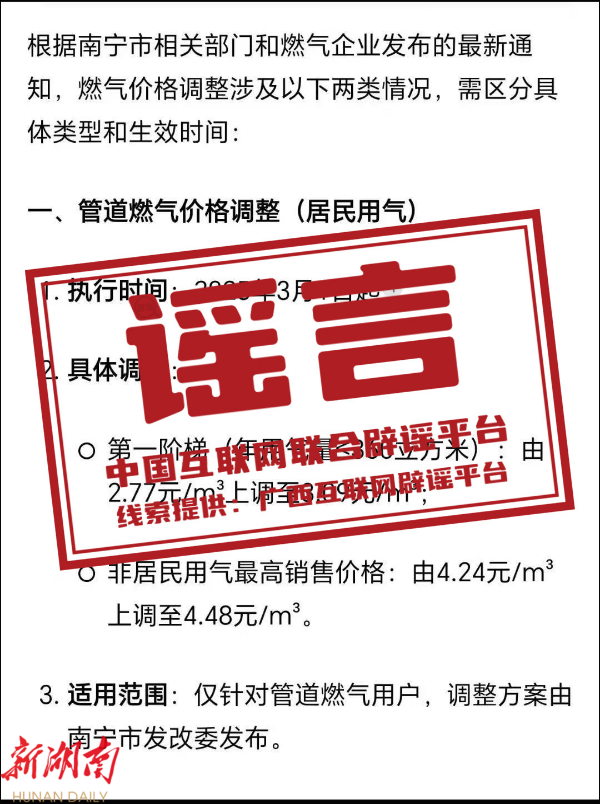 真相: 近日,一张关于“南宁燃气涨价”的截图在网络群组中传播,引发关注。经查,系网民郑某以“南宁”“燃气”“涨价”等关键词向某AI工具进行询问时,AI工具给予的相关回复。郑某得到信息后,在未核实信息真实性的情况下将该信息直接截图,发送至互联网群组中,造成不良影响。目前,当地公安机关已依法对郑某处以行政处罚。(来源:“公安部网安局”微信公众号)