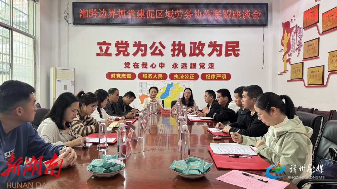 靖州融媒4月12日讯 (记者 孙文月 通讯员 曾必文)4月11日,湘黔边界抓党建促区域劳务协作联盟座谈会在靖州苗族侗族自治县大堡子镇召开。来自湘黔两省四县十乡镇分管就业工作的副职领导参会,共同签署《湘黔边界抓党建促区域劳务协作联盟协议》,标志着以“六联共治”为基础的省际劳务协作体系正式运行。