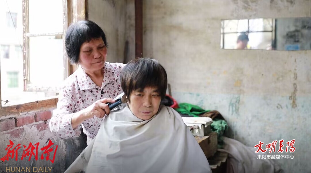 原来,在2005年,刚从耒阳市饮食服务公司退休的罗三芽看着楼栋里老人经常为理发犯难,便在自家楼道支起了理发摊。当时想着就收3块钱,能买剃头膏和推剪就够了。这一剪,就是整整20年。老邻居们算过一笔账:剪一次头发耗时半小时,平均一天服务十余人,收入仅30多元,但罗三芽从不在意盈亏。在她看来,楼道里络绎不绝的排队身影,远胜过钞票的重量。耒阳市蔡子池街道聂洲社区妇联主席李月说:“罗师傅是1990年就住在这个小区了。她剪发口碑很好,现在好多人都慕名而来,除了附近居民,还有坐公交车来的,也有要人家开车送过来的。大家提到罗师傅的手艺、她的人品,都给她点赞!”