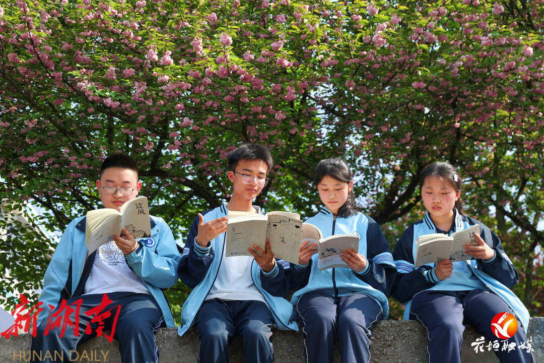 湖南日报·新湖南客户端4月13日讯(通讯员 肖引霞 龙兵 麻阳洋)“由四川过湖南去,靠东有一条官路。这官路将近湘西边境到了一个地方名为‘茶峒’的小山城时......”晚春时节,走进花垣县第一高级中学,朗朗读书声传来,学生们手捧泛着墨香的《边城》,诵读着《边城》。