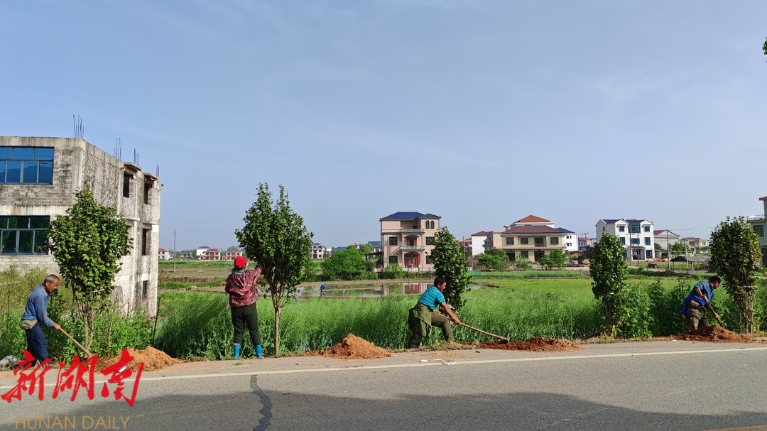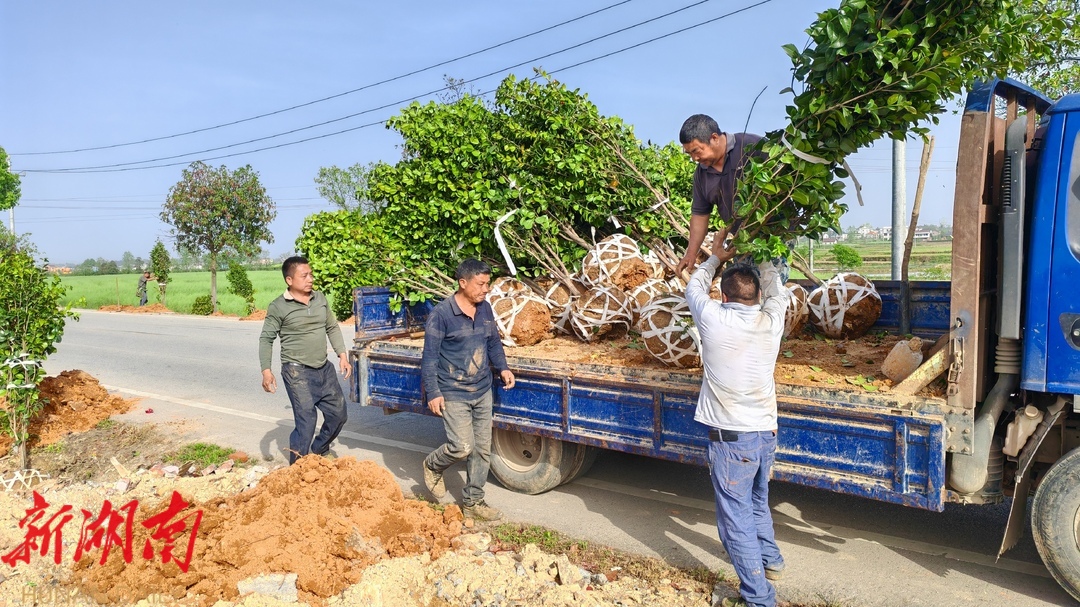 4月13日,记者驱车从毓兰镇出发,沿省道向洞口县城方向行驶,只见道路两侧新栽的茶花树整齐列队,一人高的苗木在春风中舒展新叶,与蓝天白云相映成趣,一幅"车在画中行"的和美乡村图景徐徐铺展。