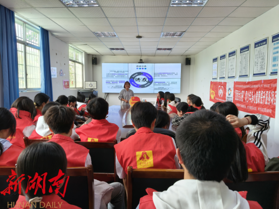 中方融媒4月14日讯 (通讯员:刘丽萍)4月13日,中方县伙伴计划示范项目在同乐社区开展青少年“清醒少年计划从‘被诱惑’到‘做选择’”心理课堂,本次活动由团县委、县志愿者协会主办, 吸引众多青少年参与。