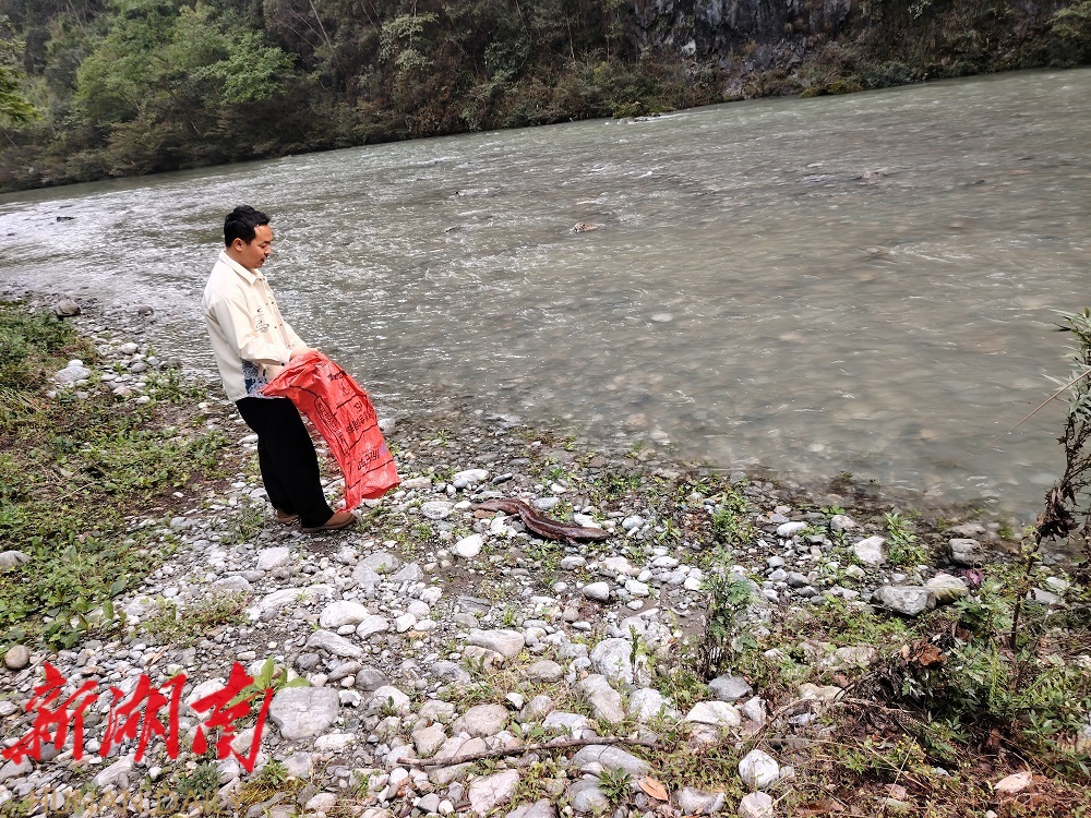 新石门客户端4月14日讯(记者 张黎明 通讯员 杨存存)4月13日,湖南壶瓶山国家级自然保护区管理局接到紧急求助电话,称集镇河滩发现一条野生“娃娃鱼”(学名大鲵),并有村民意图将其带走。保护区工作人员立即前往现场。
