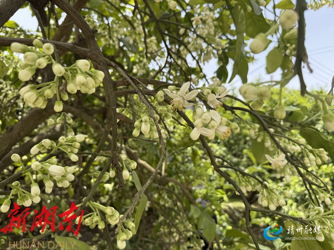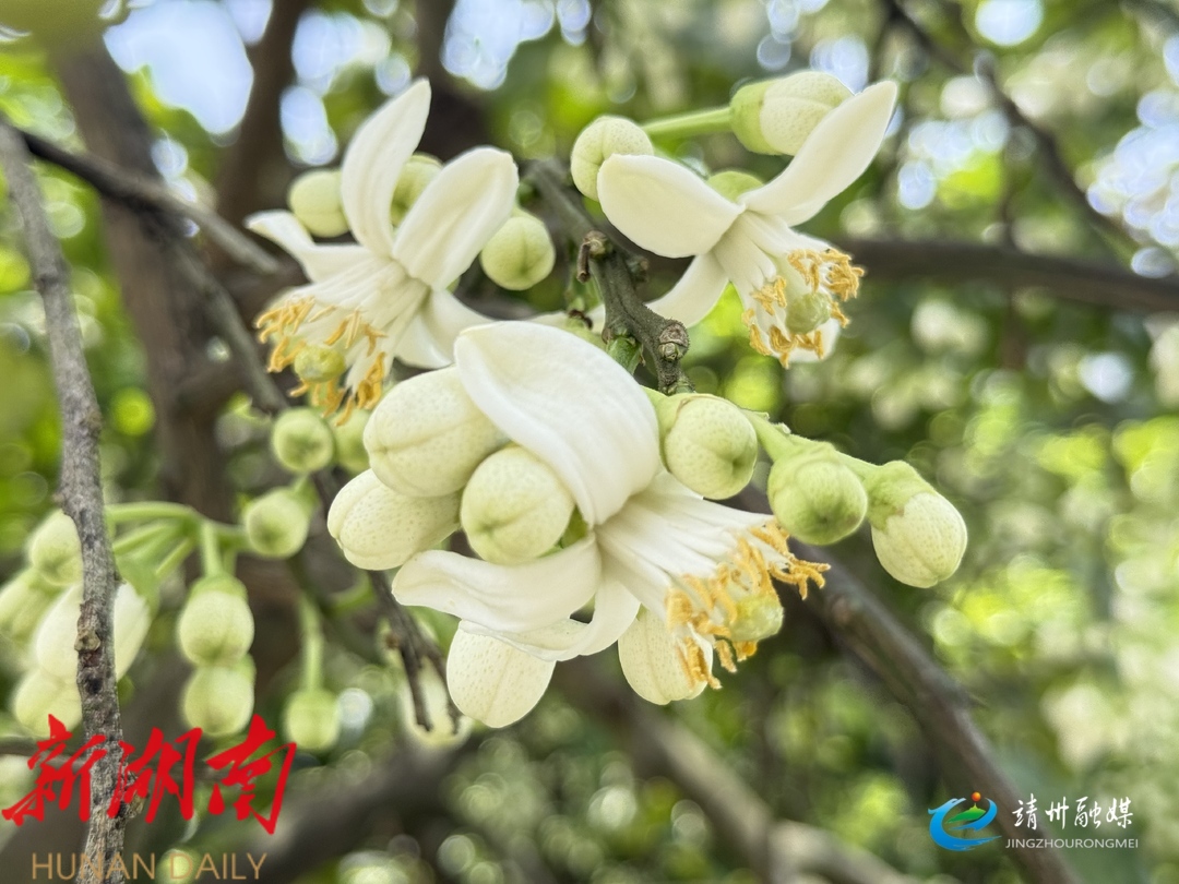 靖州融媒4月14日讯 (记者 许梦娟)4月14日,靖州苗族侗族自治县太阳坪乡土溪八龙村柚子花竞相绽放,洁白如雪,清香扑鼻。