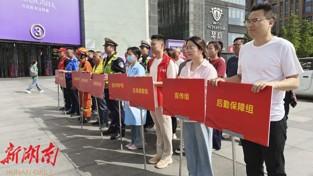 湖南日报·新湖南客户端4月14日讯(通讯员 言可桢)今天下午,开福区通泰街街道在万达广场前坪组织开展防汛应急演练。演练模拟了中山路高排口发生倒灌,出现严重内涝并且有车辆在涉水处抛锚的紧急情况。