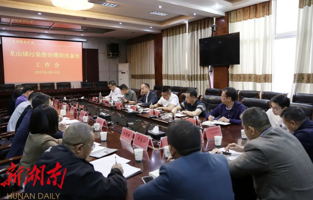 在随后召开的座谈会上,谢小军听取了新龙矿业及相关部门关于锑污染整治暨防汛备汛工作情况汇报。他强调,各相关部门及乡镇要充分认识龙山锑污染整治面临的问题和困难,正确把握治理任务和要求,持续抓好龙山锑污染治理。一要全面系统做好调研。聚焦基本数据收集、可行性方案编制等基础性工作,确保4月底前完成,为后续项目申报提供有力支撑。二要加快推进项目建设。针对历史开采矿洞修复、废弃矿渣处置、地表废水收集处理等重点任务,科学制定实施计划。同时,督促施工单位严格按照既定方案加快现有项目建设。相关乡镇和部门要强化协调联动,及时化解矛盾,形成齐抓共管的工作合力,保障项目按时间节点推进。三要加强源头管控和监管执法。严格审批建设项目,严控“两高”项目,落实环评、排污许可等制度,确保从源头预防环境污染。四要扎实防汛备汛。在汛期到来之前抓紧查漏补缺,严抓细管,把各项工作做细、做实,切实把人民群众的生命财产安全放在首位,提前做好预案,备足应急物资,确保安全度汛。