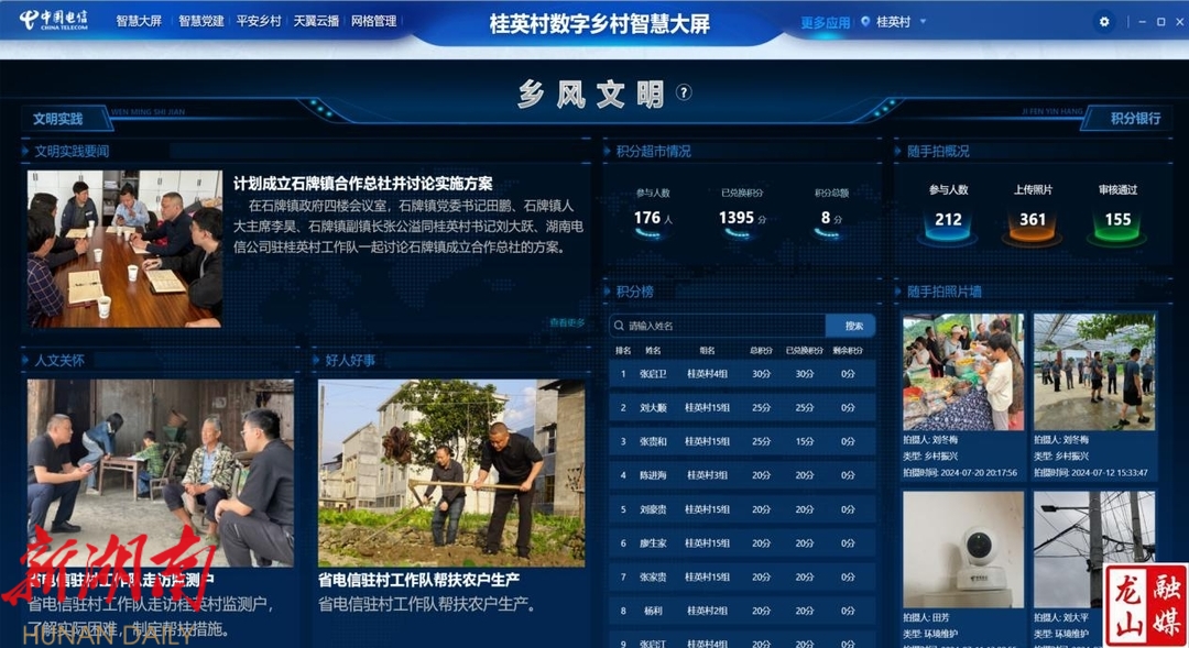 桂英村是湘西武陵山脉深处的一个土家族村落,户籍人口2347人,但近四成青壮年外出务工,留守老人、孩子和农田构成了村落的日常。传统治理模式存在信息传递滞后、村民参与度低、问题处置效率不足等痛点,与国家"共建共治共享"的乡村治理现代化要求存在差距。2021年,湖南电信乡村振兴驻村工作队的到来,为这片土地注入了“数字基因”。