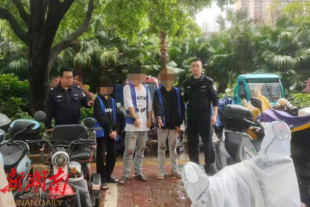 4月1日,舜陵派出所接到辖区群众李先生报警称,其停放在自家门口的摩托车被盗。接警后,民警立即开展调查工作,通过调取主要路口及周边监控,发现凌晨时分有3名男子出现在案发现场,初步判断系团伙作案。经进一步细致研判,民警锁定了3名嫌疑男子的身份及行动轨迹,并于4月10日在嫌疑人居住的小区将3人抓获,追回被盗车辆两台。