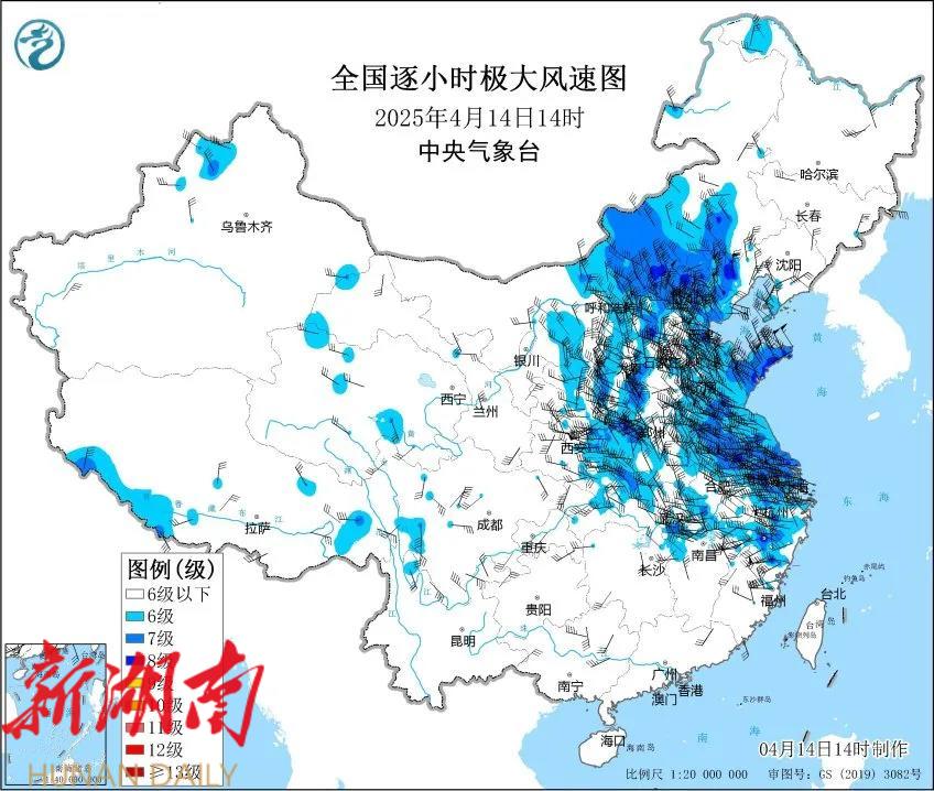 据中央气象台统计,此次大风过程8级以上阵风影响国土面积超过350万平方公里,影响人口超过6.1亿人; 10级以上阵风影响面积超过100万平方公里;23个省份出现12级以上阵风。河北、河南、山西、陕西、湖北、内蒙古等地共有327个国家级气象观测站最大阵风突破4月历史极值 ,其中64个国家级气象观测站破历史极值。