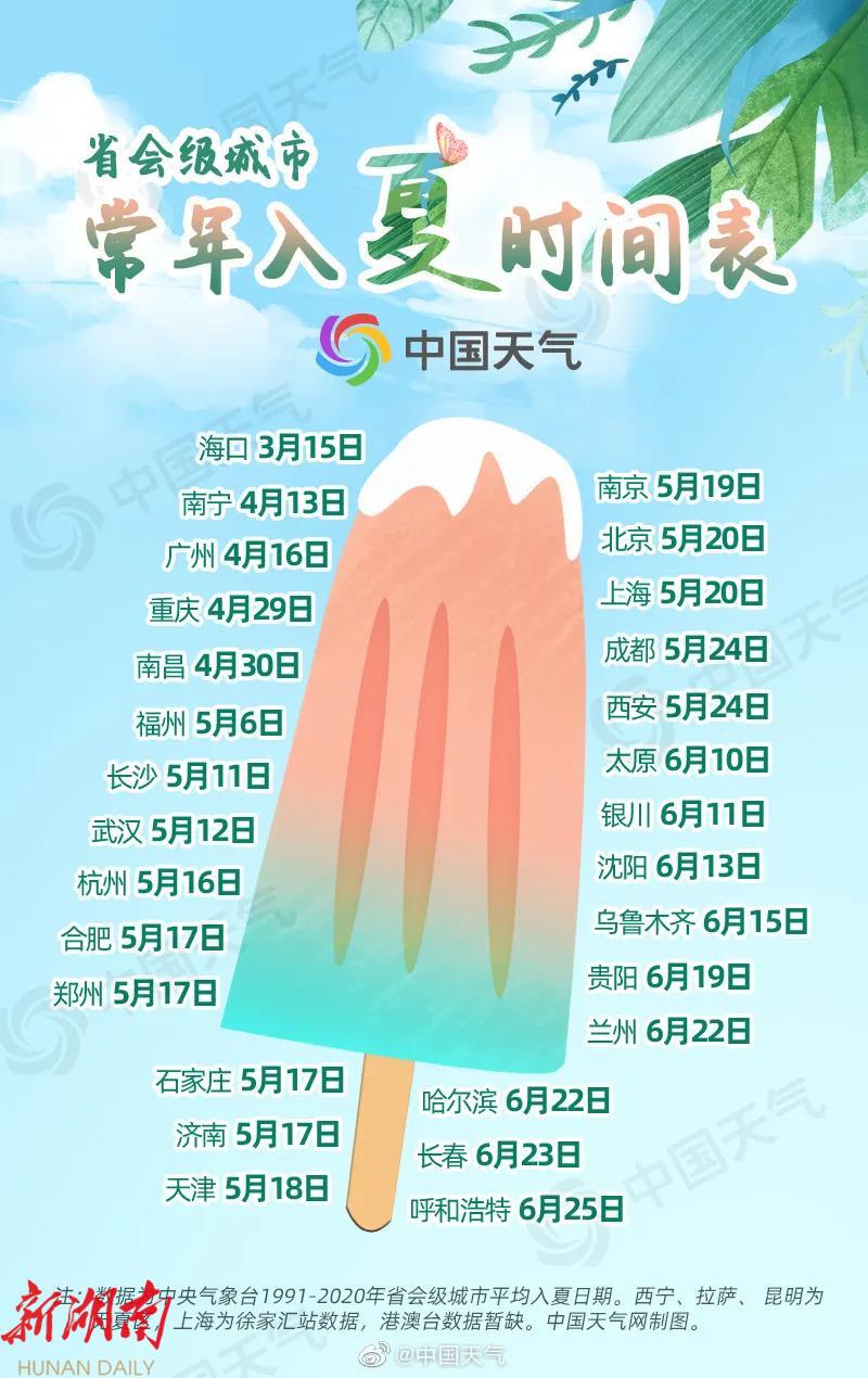 常年5月是全国入夏最集中的时间,北京、上海、成都、长沙、武汉、杭州等14个省会级城市会陆续开启入夏进程。