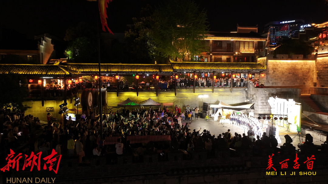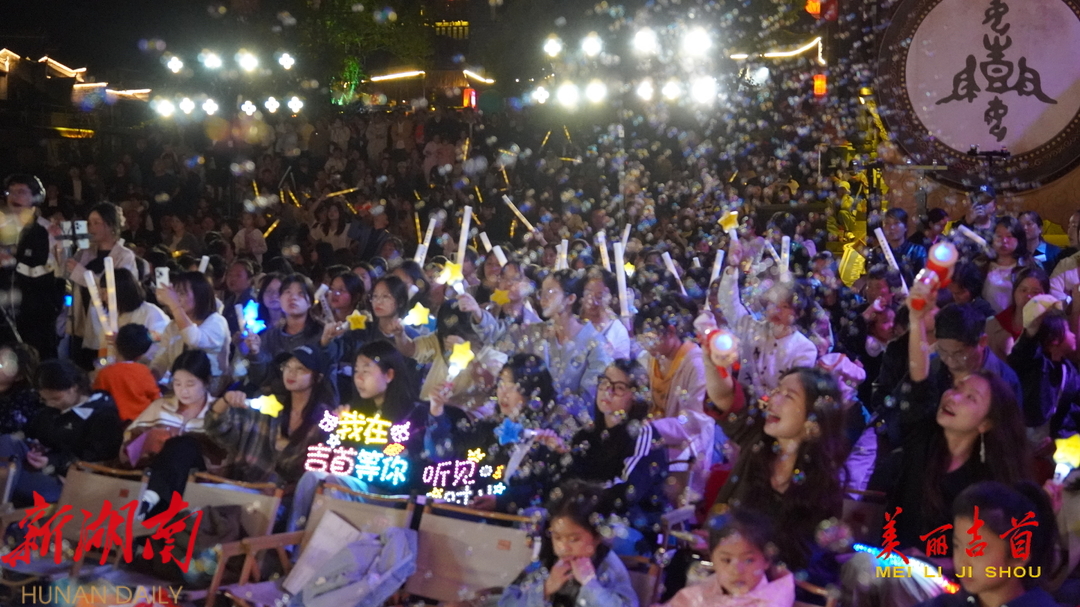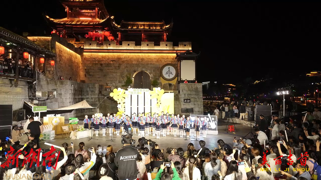 夜幕下的乾州古城灯火璀璨,浪先生乐队以一首《春天花会开》震撼开嗓。在这充满活力的舞台上,既有朝气蓬勃的大学生群体,也有才华横溢的音乐爱好者,更有稚气未脱的小学合唱团成员。从《相思遥》到《棠梨煎雪》,每一首歌都藏着对吉首的深情。