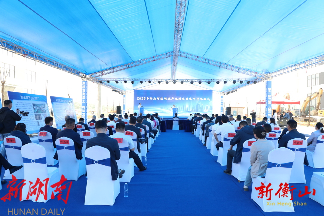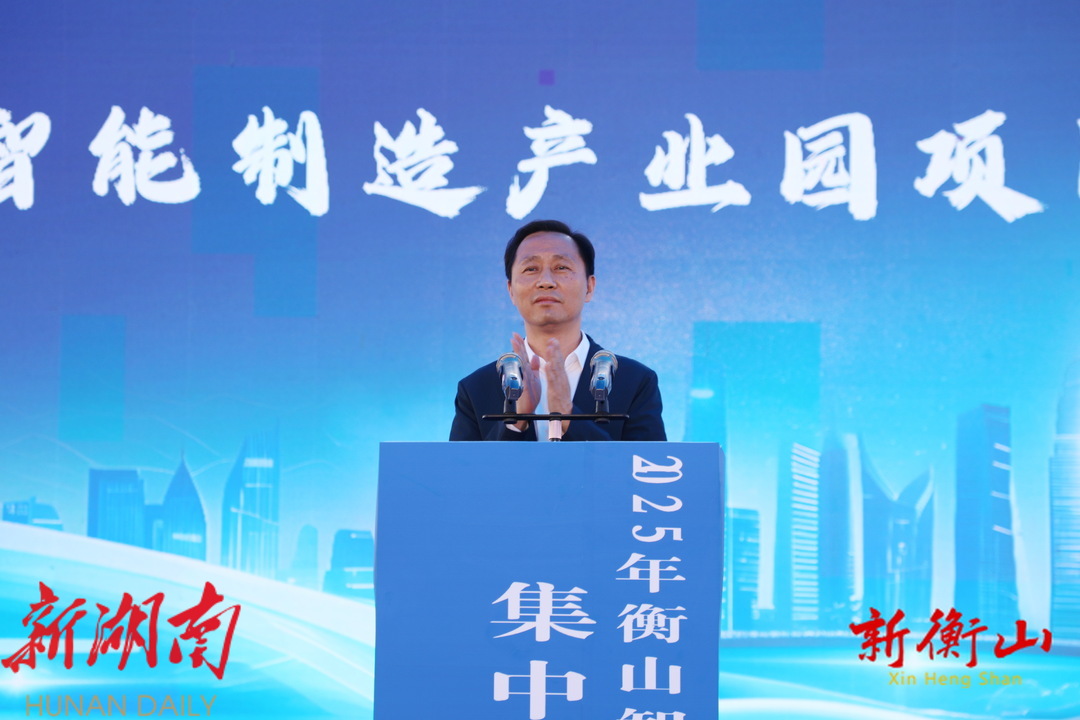新衡山客户端4月15日讯(记者:李圣景 刘永欢 周彭斌 蒋鹏 旷雨澄)4月15日上午,2025年衡山智能制造产业园项目集中开工仪式在衡山高新区举行,标志着总投资3.7亿元的6大项目正式进入建设阶段,为衡山县新一轮产业升级与经济发展注入强劲动能。衡阳市政协副主席、衡山县委书记戴新贤宣布项目正式开工。县委副书记、政法委书记谢斌主持仪式。