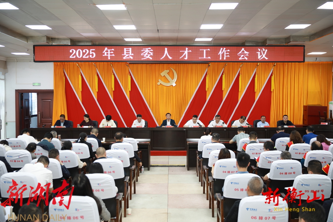 新衡山客户端4月15日讯(记者:刘永欢 周彭斌)4月15日,我县召开2025年县委人才工作会议。衡阳市政协副主席、衡山县委书记戴新贤出席会议,强调要将人才工作摆在更加突出的位置,聚天下英才而用之,为全县经济社会又好又快发展提供强有力的智力支持和人才保障。县委副书记、县委政法委书记谢斌主持会议。县人大常委会主任旷志军,县政协主席唐年初参加会议。