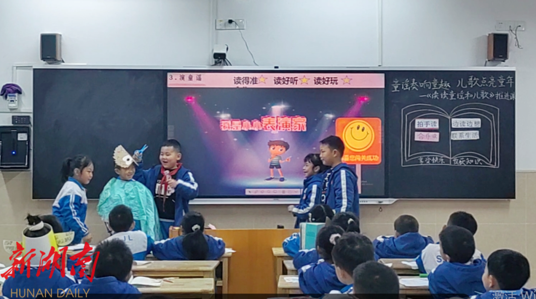 湖南日报·新湖南客户端4月15日讯(通讯员 肖乐晴)“小刺猬,去理发,嚓嚓嚓,嚓嚓嚓……”近日,在湘阴县湖南师范大学附属金龙学校阅读节现场,一年级的孩子们正生动地表演着童谣《小刺猬理发》。