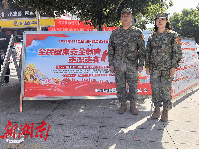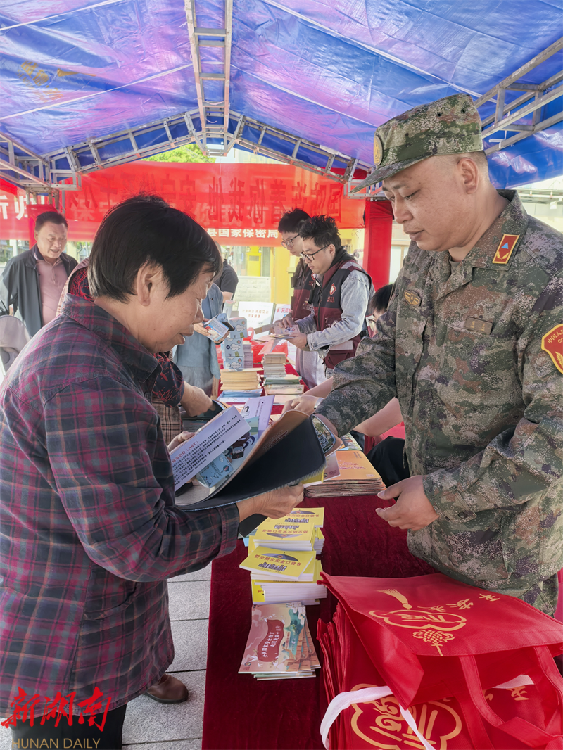 湖南日报·新湖南客户端4月15日讯 (通讯员 何春花) 为贯彻落实总体国家安全观,强化保密意识,压实保密责任,提升防护能力,4月15日上午,岳阳县国防动员办公室在东方盛世广场开展国防动员保密宣传教育活动,全力筑牢国防动员安全屏障。