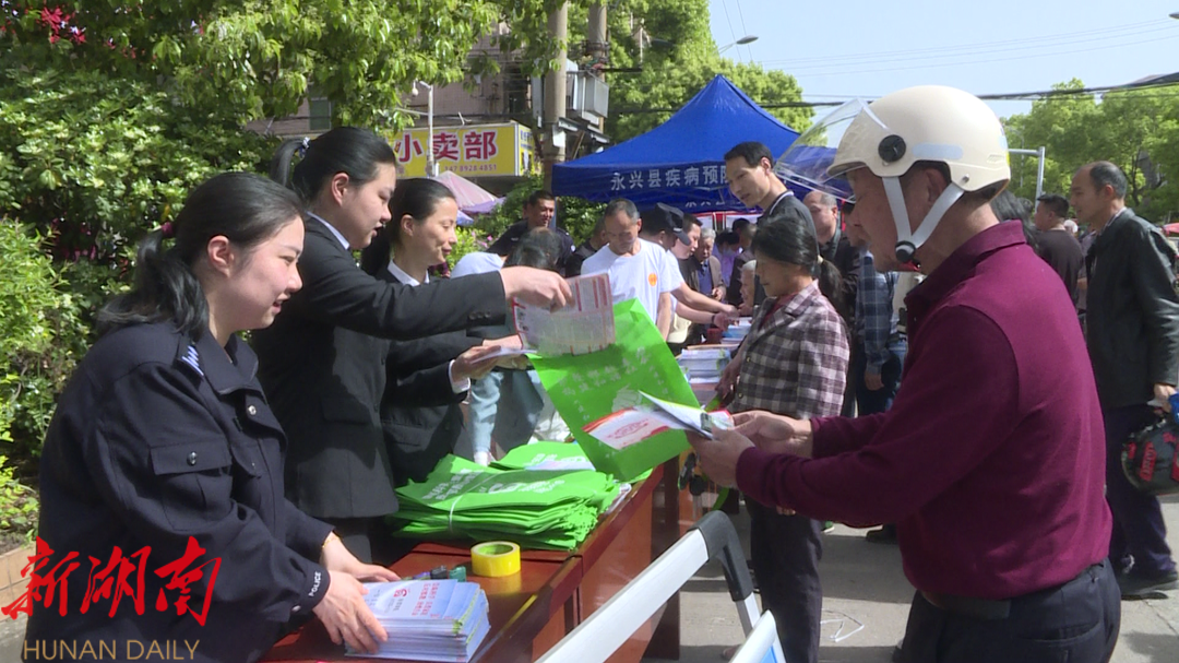 4月14日,永兴县多个部门来到晶讯光电、柏林镇开展全民国家安全教育日集中宣传活动。