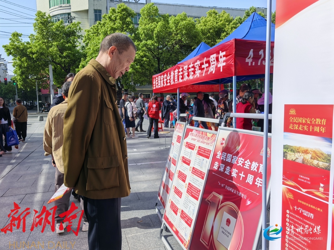 靖州融媒4月15日讯 (记者 周悦伊 通讯员 李倩 刘东琴 吴虹 周佩瑶 俞洁 苏冬艳 杨珽杰 彭 茂胜 胡彩 相 杨丽华 汤申亮 于琪 龙超 杨荔 蒋子易 郑丽媛 吴丽雯 马文芝 )今年是第十个全民国家安全教育日,连日来,靖州苗族侗族自治县各地纷纷以“全民国家安全教育 走深走实十周年”为主题, 开展安全教育日活动。