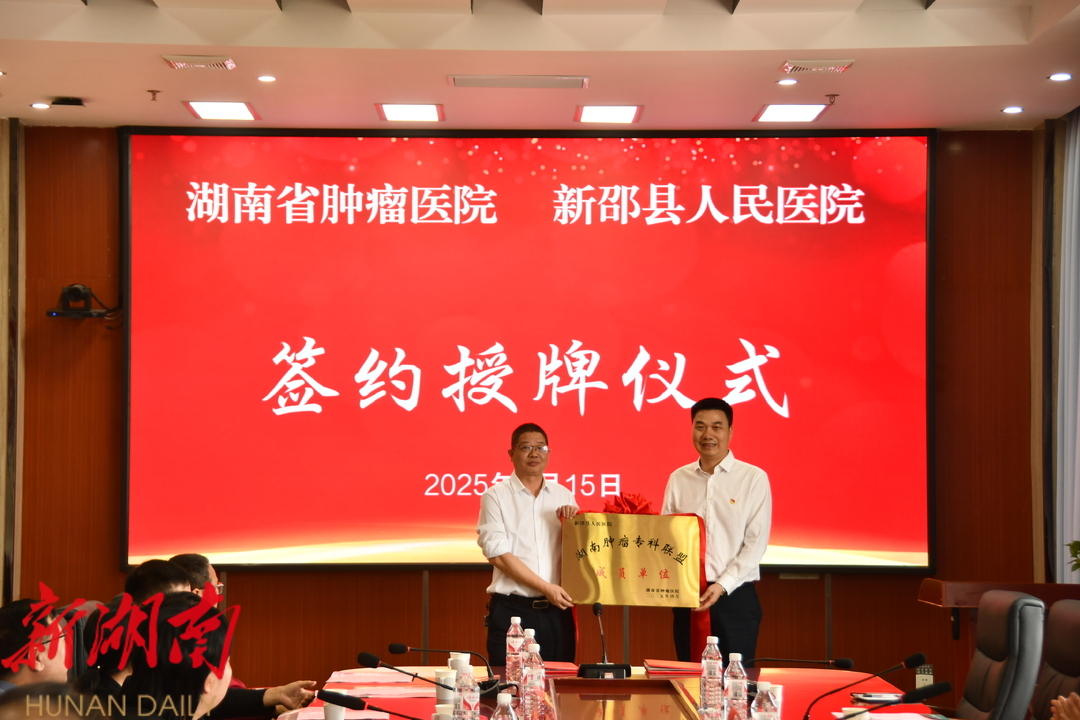 新新邵客户端4月15日讯(记者 寻健 肖晔)4月15日,由湖南省肿瘤医院、湖南省癌症防治中心、湖南省肿瘤筛查和早诊早治中心、邵阳市中心医院主办的“2025年湖南肿瘤早筛早诊早治行动”三湘行活动在新邵县人民医院举行。湖南省肿瘤医院党委书记蔡宏坤,院党委委员、副院长欧阳煜,新邵县人民政府副县长罗静出席活动。