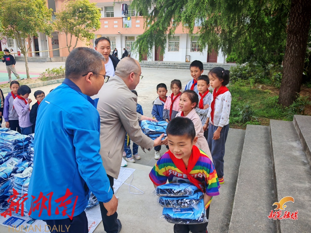 新晃融媒4月16日讯(记者:舒昊)4月15日,江苏省常州爱伦机械有限公司为我县 林冲镇天堂学校捐赠定制的价值3万余元校服。