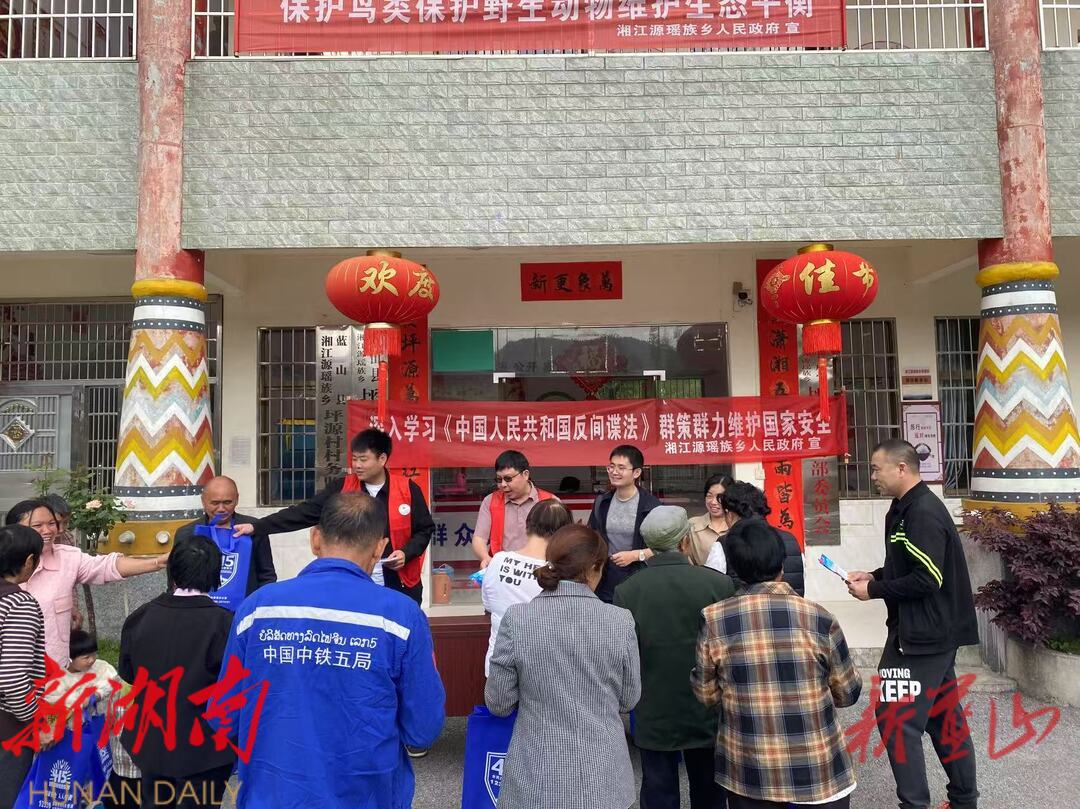 新蓝山客户端4月16日讯 (通讯员 雷曦)近日,湘江源瑶族乡人民政府联合乡司法所、乡平安办等相关部门工作人员共同策划并开展“4·15”全民国家安全教育日志愿服务活动。