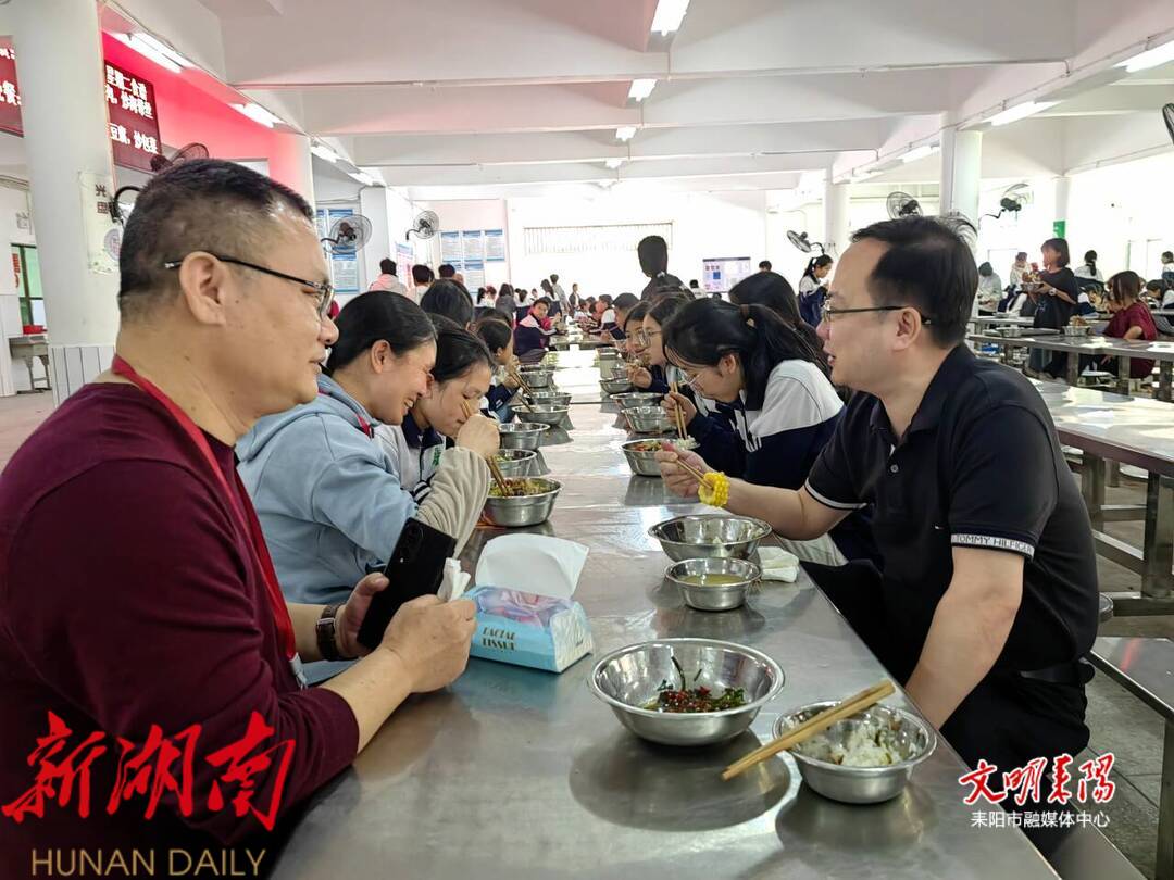 耒阳融媒4月15日讯(通讯员 王烨琳 记者 刘喜) 4月15日,市委副书记、政法委书记王星皓以“四不两直”方式到蔡子池中学督导检查校园食品安全与膳食经费管理工作,并与学生共同就餐。