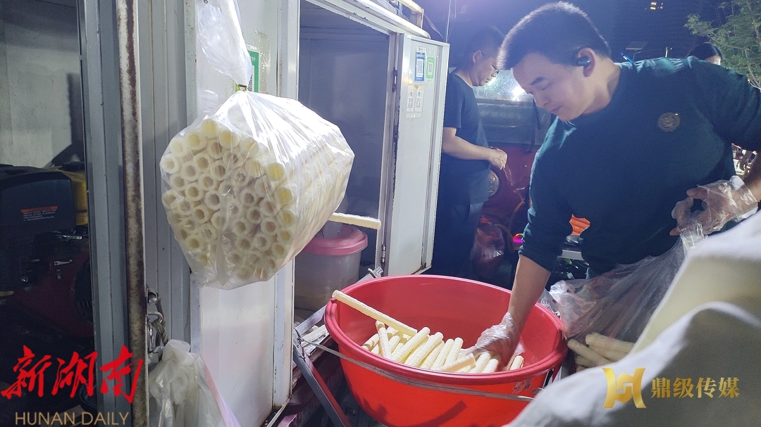 往另一边走,烟火气更浓。烧烤摊炭火通红,羊肉串滋滋冒油,孜然粉一撒,香气便勾得人迈不动步,有时,我会点上一盘香喷喷的鸡蛋炒米面,烤上几串牛肉串,美味入口,瞬间觉得人间值得。旁边卖果汁的也不甘示弱,将各色水果堆成小山,现榨现卖,橙汁、西瓜汁、梨汁,颜色鲜亮,盛在透明的塑料杯里,插上吸管,便是夏日最好的解渴之物。隔壁卖米糕的婆婆推着老式铁皮车,蒸笼一掀,白汽腾起,米糕甜香扑鼻,1块钱一个,孩子们排成长队。