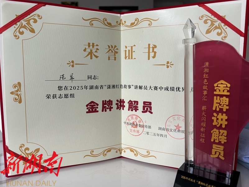 湖南日报·新湖南客户端4月16日讯(通讯员 徐晚晴)4月15日,2025年湖南省“潇湘红色故事”讲解员大赛决赛在郴州市汝城县沙洲村落幕。湘阴县文旅广体局青年干部范军在比赛中脱颖而出,荣获志愿组“金牌讲解员(一等奖)”。