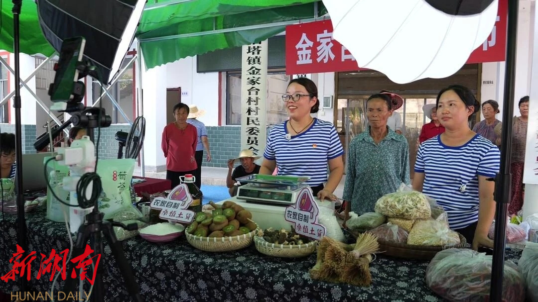 湖南日报·新湖南客户端4月15日讯(通讯员 熊蕊)“家人们, 看看这纯手工红薯粉丝,Q弹爽滑,炖肉煮火锅都是一绝!”近日,在利福塔镇金家台村,村支书张亚莉化身“带货主播”,在抖音直播间热情推介村里的特色农产品。一台大屏显示器、两盏补光灯、一张摆满农产品的木桌,构成了助农增收的新阵地。