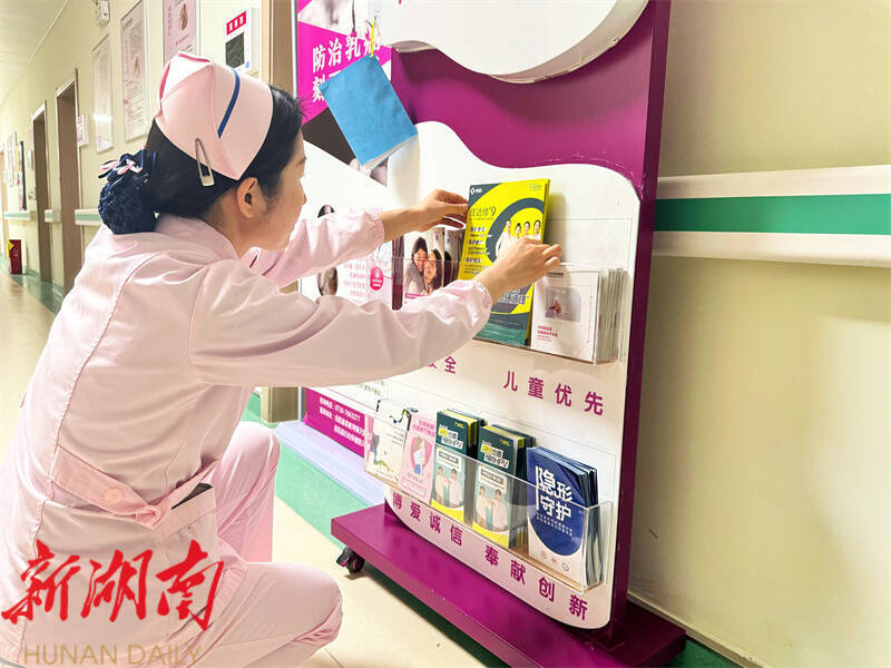 在县妇幼保健院,记者看到,医护人员正在医院各处张贴疫苗海报、摆放宣传册,并为前来咨询的市民提供现场答疑及科普宣传。