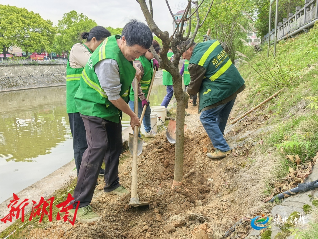 靖州融媒4月17日讯 (记者 周悦伊 通讯员 吴宜义)4月17日,靖州苗族侗族自治县园林绿化服务中心抓住春季绿化养护“黄金季节”,对城区异溪南路沿河风光带开展精细化补植增绿工作。