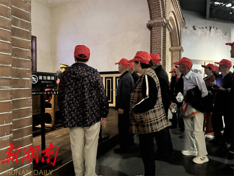 在花明楼镇刘少奇纪念馆内,老人们行走在具有历史脉络和时代痕迹的场馆内,每一张照片、每一段文字,都生动再现了当年的革命历程。老人们驻足凝视,拿出手机拍照记录,不时发出感慨,仿佛亲身经历了那段波澜壮阔的历史岁月。