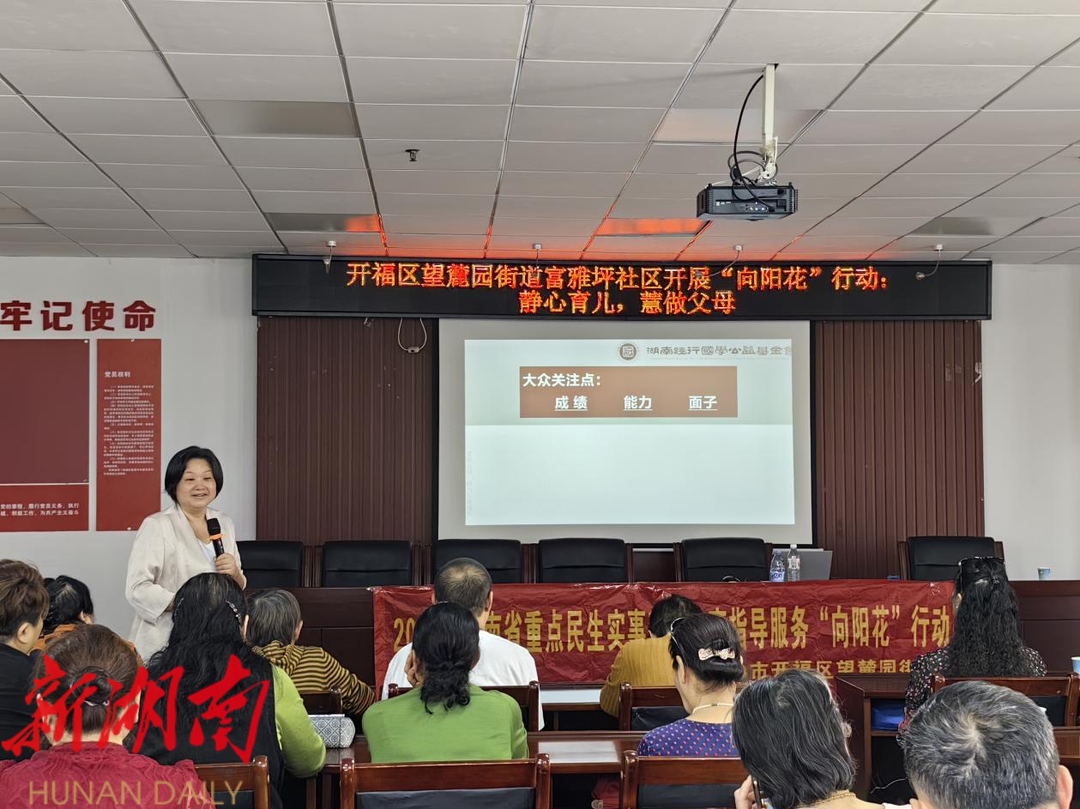 湖南日报·新湖南客户端4月17日讯(通讯员 朱秀云)为不断提升自身的家庭教育能力,给孩子的健康成长保驾护航,4月17日,开福区望麓园街道富雅坪社区家长教育指导服务站联合湖南践行国学公益基金会开展了一场以“静心育儿,慧做父母”为主题的“向阳花”行动,吸引了50余位家长参与其中。