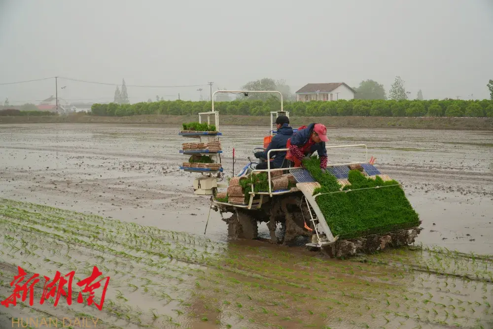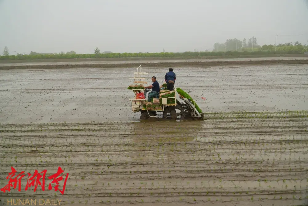 常德西洞庭区隆湘隆机水稻种植专业合作社主任 魏亮辉:我们自己有1300亩,跟农户服务有1800亩,目前有插秧机11台,平均每台插秧机每天作业35亩到40亩,从4月11日开始早稻插秧,预计4月25号之前完成早稻插秧。