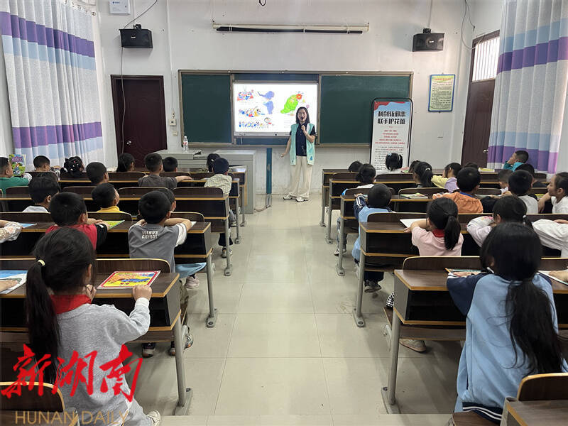 毛田镇中心小学一年级学生杨雨妍说:“今天这堂课很有趣,老师给我们讲了小白兔、小象和野兽和毛毛虫,我和同学们听得很认真。”