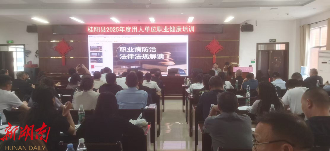 新桂阳4月18日讯(通讯员 李院军 谭勇 陈锡欣)为切实保障劳动者职业健康权益,提升用人单位职业卫生管理水平,4 月 17 日,我县举办2025年度用人单位职业健康培训班,全县 90 余家重点行业企业负责人、140 余名职业卫生管理员参加培训。