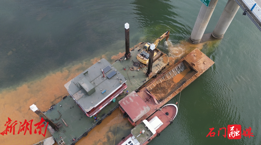 新石门客户端4月18日讯(记者 牟宇飞)暮春四月,机器轰鸣打破河面宁静。在石门二桥下,河面上施工船正在紧张施工,工作人员正操作着挖机对桥柱范围内进行清淤整平,这标志着我县境内的澧水石澧航道建设工程桥梁防撞建设正式启动。