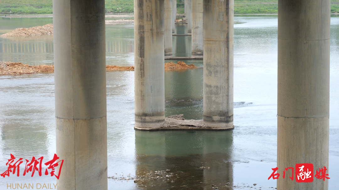 “石门二桥需要进行防撞的是第3-4-5根桥墩。现在是对桥柱范围内清淤,整平,然后我们就会进行钢制防撞的安装,安装完成以后,对桥梁起到保护作用,防止船舶碰撞,或者大型漂浮物对桥墩造成损害。”湖南省中源航务工程有限责任公司澧水石澧航道建设工程桥梁防撞及航标工程现场负责人王涛说道。