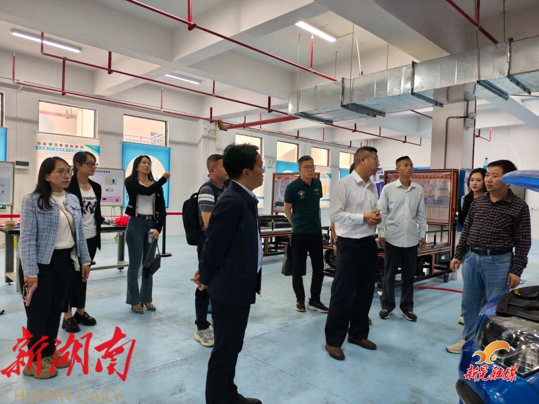 当天,顺德职业技术学院团队一行实地观摩了新晃职业中专汽车专业教学场景。观摩过程中,双方以智能化实训设备应用、“理实一体化”教学模式为切入点,就实训基地高效管理、设备资源优化配置等展开深入探讨。