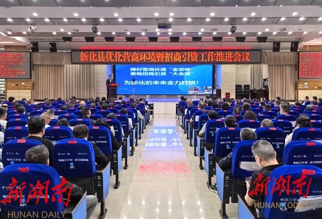 湖南日报·新湖南客户端4月18日讯(通讯员 康爱军 刘文)4月17日,新化县优化营商环境暨招商引资工作推进大会召开。县委副书记、县长彭韬出席并讲话;杨韶红、李笃成、陈国聪、鄢洛阳、杨铁贞、赵伟光等全体在家县级领导出席;大会还邀请了176名企业家,299名营商环境特约监督员参加。