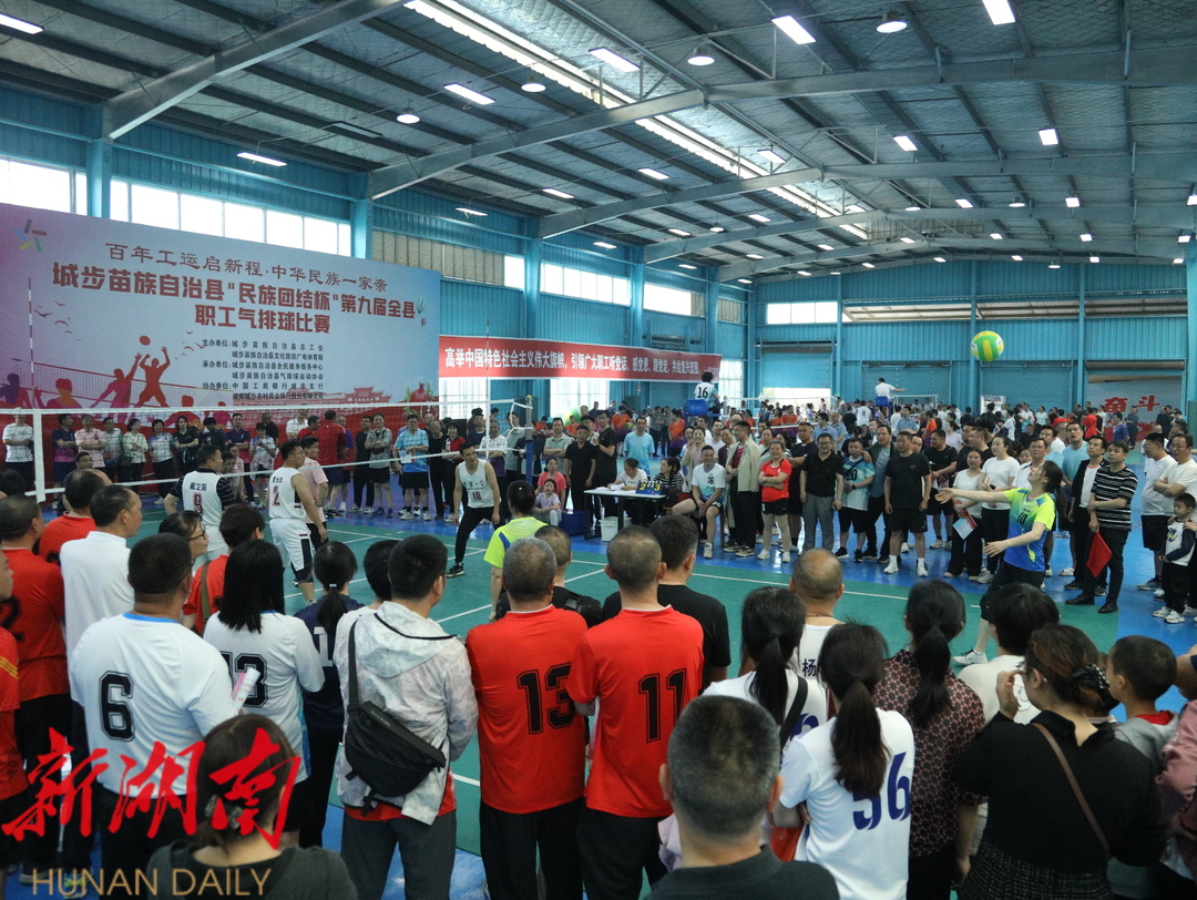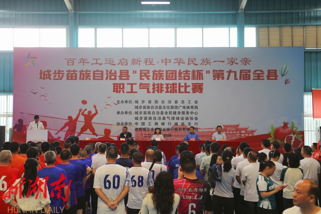 新城步客户端4月19日讯(记者 王蕾婷 刘沛含 通讯员 彭洪斌) 4月19日上午,“百年工运启新程·中华民族一家亲”——城步苗族自治县“民族团结杯”第九届全县职工气排球比赛在县气排球馆隆重开幕。此次比赛将持续至4月27日,旨在庆祝中华全国总工会成立100周年,团结各族人民,凝聚职工力量,促进全民健身运动广泛开展,增强团队精神,营造健康向上的工作氛围。